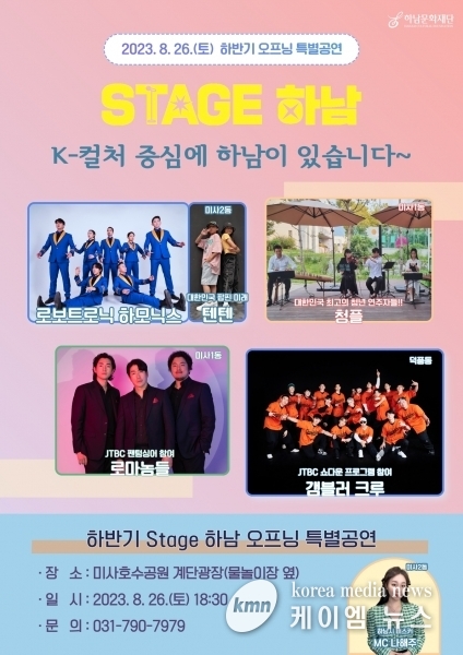 하반기 공연의 서막을 여는 오픈 특별공연은 26일 오후 6시 30분 미사호수공원 계단광장에서 ‘K-컬처 중심에 하남이 있다’를 주제로 개최된다.