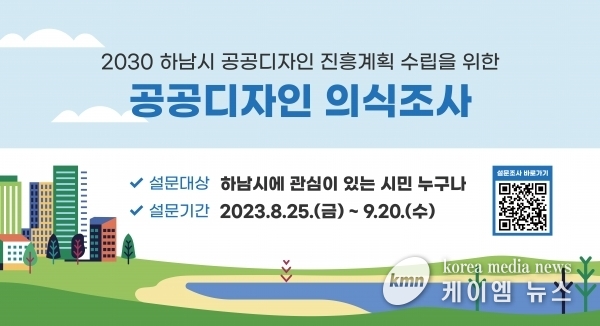 (케이엠뉴스) 하남시는 이달 25일부터 9월 20일까지‘2030 하남시 공공디자인 진흥계획’수립을 위해 공공디자인 전반에 대한 설문조사를 실시한다고 밝히며 시민들의 적극적인 참여를 당부했다.