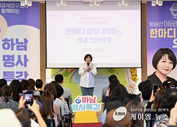 (케이엠뉴스) ‘34년 차 방송인’ 이금희 아나운서가 5일 하남시를 찾아 ‘한마디 말로 우리는’을 주제로 요즘 시대에 필요한 대화와 소통법에 대한 강연을 펼치며 큰 호응을 얻었다.