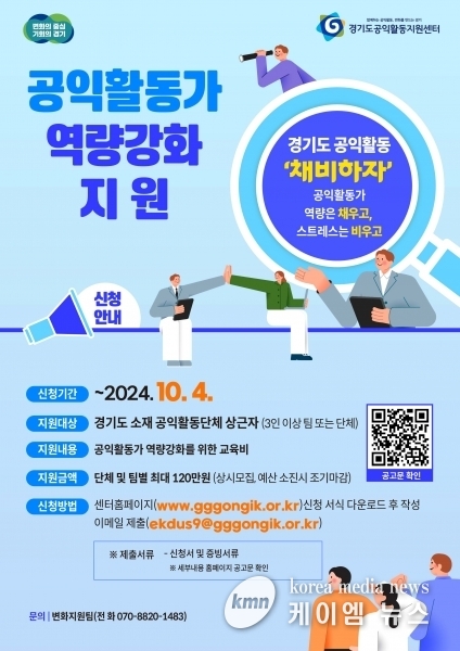 (케이엠뉴스) 경기도공익활동지원센터가 경기도 공익활동가에게 공익활동 역량 강화에 필요한 교육과 재충전 프로그램을 지원한다.