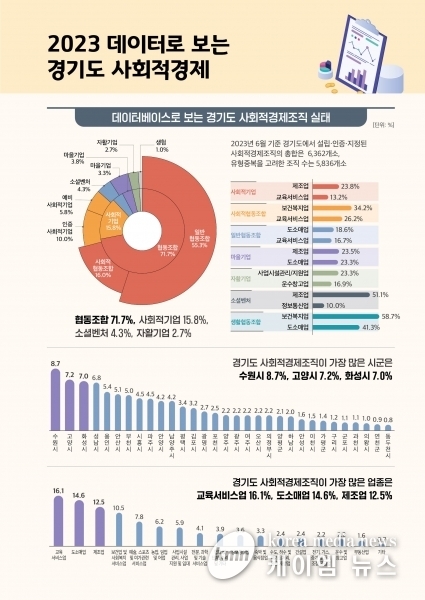 조사 결과를 보면 2023년 기준 경기도 사회적경제 조직 수는 6,362개소로 전국의 18.2%를 차지하는 것으로 나타났다.