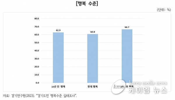 (케이엠뉴스) 경기연구원은 경기도 행복지표를 개발하고 이를 토대로 2023년 11월 1~5일 경기도민 2천500명을 대상으로 수행한 경기도민 행복수준 실태조사 결과를 담은 ‘경기도 행복지표 개발을 위한 기초연구’ 보고서를 발간했다고 7일 밝혔다.