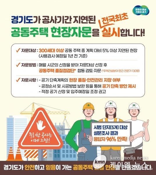 (케이엠뉴스) 경기도가 공사 기간이 지연된 공동주택 현장에 자문단을 파견하는 사업을 전국 최초로 추진한다.