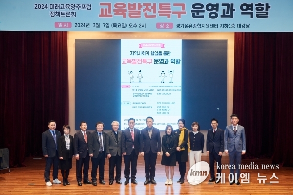 (케이엠뉴스) 경기도의회 김민호 의원은 7일 경기섬유종합지원센터에서 임태희 경기도교육감, 강수현 양주시장을 비롯 지역사회 교육 관계자와 학부모, 시민 등 200여명과 함께 미래교육양주포럼 주최 토론회를 개최했다고 밝혔다.