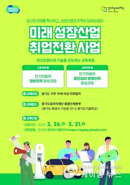 (케이엠뉴스) 경기도와 경기도일자리재단이 ‘전기자동차 정비인력 양성과정’과 ‘전기자동차 충전설비 운영인력 양성과정’에 참여하고자 하는 19세 이상 미취업 경기도민을 오는 21일까지 모집한다.