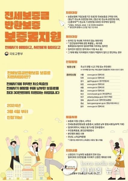또한 올해 6월 30일 이전에 지원한 신청인 중 2024년 1월 1일부터 3월 3일까지 전세보증금반환보증에 가입했던 청년 또는 신혼부부는 현재 보증보험이 유효하지 않더라도 소급 지원한다.