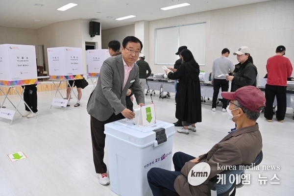 (케이엠뉴스) 이현재 하남시장이 제22대 국회의원 선거 사전투표 첫날인 5일 감일동 사전투표소에서 사전투표에 참여했다.