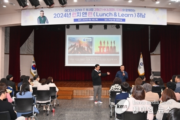 하남시는 18일 시청 본관 대회의실에서 공직자 150여명이 모인 가운데 진행된 ‘2024년 런치앤런’ 특강에 강형근 대표를 초빙해 ‘조직과 자신의 행복한 성장을 이끄는 차세대 리더의 자기경영 노트’를 주제로 한 명사초청 특강을 진행했다.