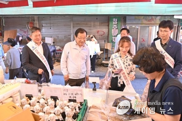 (케이엠뉴스) 하남시는 28일 농협은행 하남시지부 김응경 지부장 및 임원들과 함께 신장·덕풍 전통시장과 석바대 상점가를 방문해 ‘5월 전통시장 가는 날’ 장보기 행사를 진행했다.