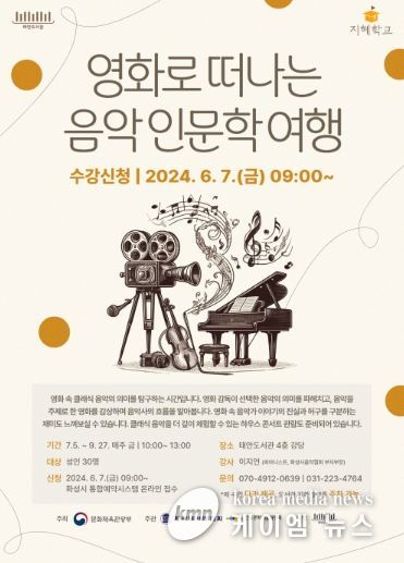 (케이엠뉴스) 화성시 태안도서관이 ‘2024 지혜학교’ 공모사업에 선정됐다. ‘지혜학교’는 문화체육관광부가 주최하고 한국문화예술위원회와 한국도서관협회가 주관하는 공모사업으로 도서관 이용자들에게 삶의 지혜를 체득할 수 있는 기회를 제공하는 사업이다. 태안도서관은 ‘영화로 떠나는 음악 인문학 여행’을 주제로 총 13회차의 프로그램을 운영할 예정이다.