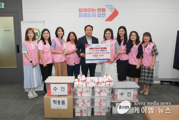 (케이엠뉴스) 오산시는 지난 14일 이룸봉사단에서 관내 아동 등 생활시설 지원을 위해 직접 만든 수제 쿠키 500개 및 수건 50개, 학용품 100개의 후원물품을 기탁했다고 밝혔다.