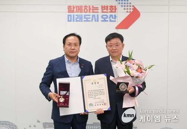 (케이엠뉴스) 오산시는 지난 17일 6·25전쟁 참전유공자인 고(故) 박지만 상사의 유가족에게 금성화랑무공훈장과 훈장증을 전수했다.