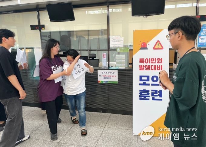 (케이엠뉴스) 오산시시설관리공단은 민원업무 담당 직원 신변보호 및 안내데스크 비상상황 대응 능력 향상을 위해 19일 오산스포츠센터에서 폭언·폭행 민원을 가상한 ‘특이민원 발생대비 모의 훈련’을 실시했다고 밝혔다.