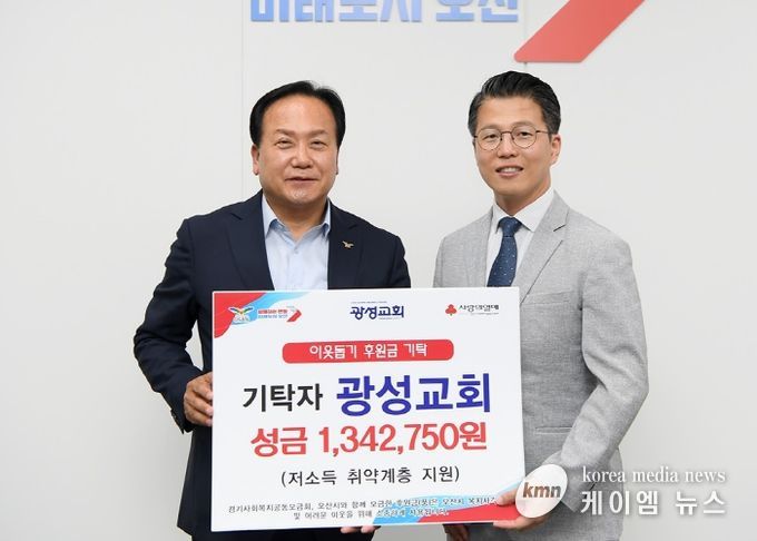 (케이엠뉴스) 오산시는 20일 광성교회에서 지역 내 저소득 취약계층 지원을 위한 후원 성금 130여만 원을 기탁했다고 밝혔다.