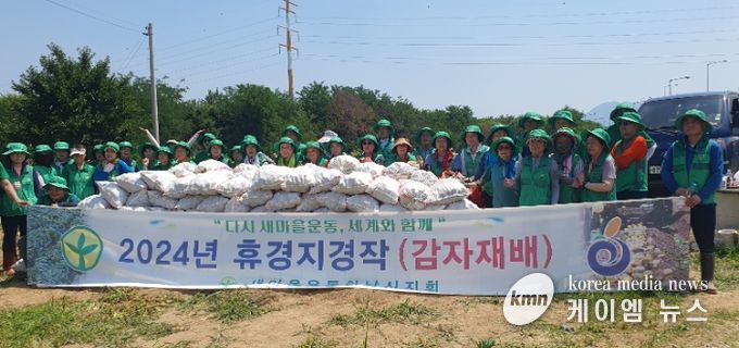 (케이엠뉴스) 새마을운동 하남시지회는 20일 신송연 지회장을 비롯해 회원 150여명과 이현재 하남시장 등이 참여한 가운데 이웃돕기 사업의 일환으로 휴경지 경작 감자 수확 행사를 했다.