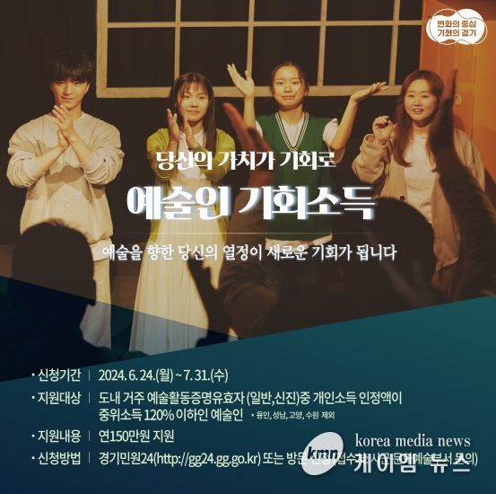 (케이엠뉴스) 오산시가 경기도와 공동으로 추진하는 ‘경기도 예술인 기회소득’지원 사업 신청 접수를 6월 24일부터 7월 31일까지 실시한다.