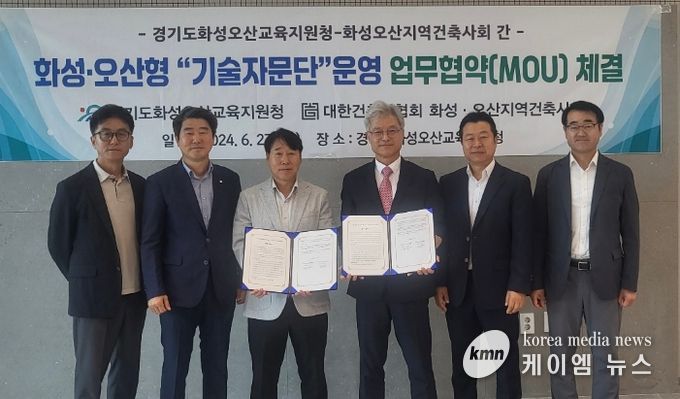 (케이엠뉴스) 화성오산교육지원청과 화성오산지역건축사회는 2024. 6. 27. 화성오산교육지원청 교육장실에서 기술자문 협력체계 구축을 위한 업무협약(MOU)을 체결했다.