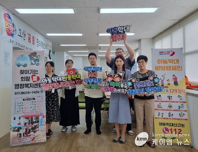 (케이엠뉴스) 오산시는 지난 27일 아동학대 인식개선 및 예방 캠페인을 죽미마을 8단지 아파트 주변에서 진행했다.