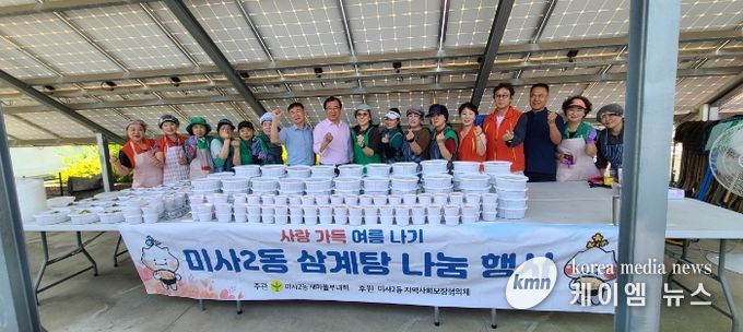 (케이엠뉴스) 미사2동지역사회보장협의체는 새마을부녀회와 지역 내 취약계층이 올여름 무더위를 이겨낼 수 있도록 삼계탕 나눔 행사를 가졌다.