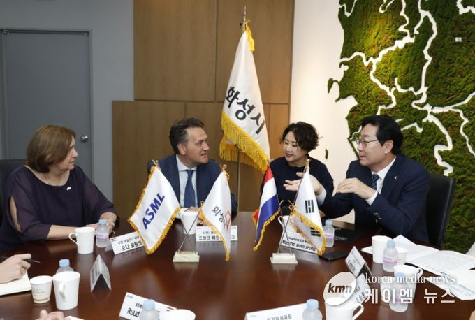 4일 정 시장은 방한 중인 ASML의 대외총괄부사장(프랭크 헤임스케르크)을 만나 “화성 New 캠퍼스(업무시설⦁재제조시설 및 트레이닝센터 등)에 이어 ‘ASML-삼성전자 연구지원시설(1조원)’ 건립 부지로 화성시를 선택해 주신 것에 감사하다”면서 “화성에서 추진하는 ASML 프로젝트의 성공을 위해 각종 인허가부터 밀착지원하는 원스톱 서비스를 제공하겠다”고 말했다.