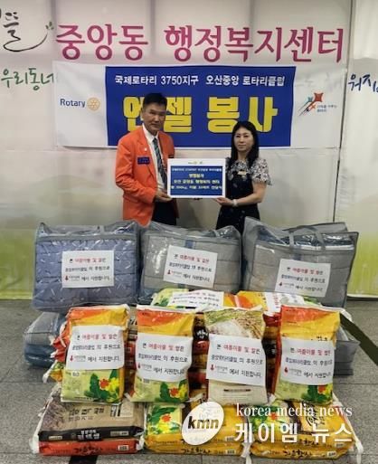 (케이엠뉴스) 오산시 중앙동은 지난 16일 오산중앙로타리클럽이 관내 저소득 취약계층을 위해 ‘여름 이불 10채, 쌀 10kg 30포’를 기탁했다고 전했다.