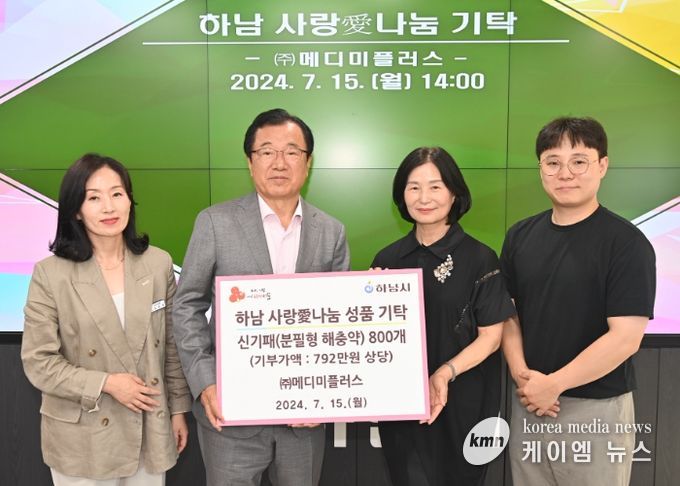(케이엠뉴스) 지난 15일 ㈜메디미플러스는 하남사랑愛 나눔 성품으로 신기패 800개를 기탁하고 기탁식을 가졌다.