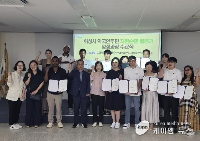 (케이엠뉴스) 화성시는 21일 화성종합경기타운 대회의실에서‘화성시 외국인주민 자원순환 활동가 양성과정’ 수료식을 개최했다.
