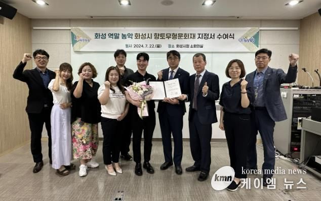 (케이엠뉴스) 화성시가 ‘화성 역말 농악’을 화성시 향토문화재 제2호로 지정하고 화성 역말 농악 보유단체로 선정된 화성역말농악보존회에 향토문화재 지정서를 22일 전달했다.