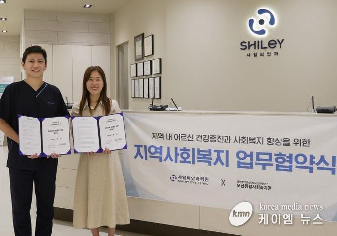 (케이엠뉴스) 오산종합사회복지관은 지난 19일 동탄샤일리안과와 지역주민들의 눈 건강과 복지 증진을 위한 업무협약을 체결했다.