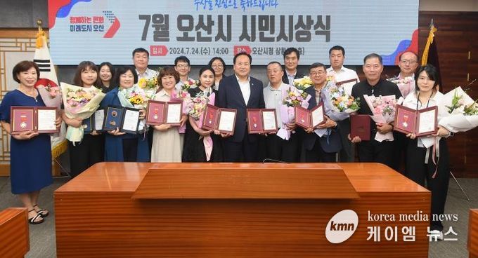 (케이엠뉴스) 오산시는 지난 24일 2024년 7월 시민시상식을 오산시청 상황실에서 개최했다.