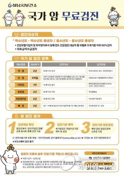 (케이엠뉴스) 하남시는 우리나라 국민의 사망원인 1위인 암을 조기에 발견해 치료율을 높일 수 있도록 여름 휴가철을 맞아 국가암검진에 참여할 것을 당부했다.