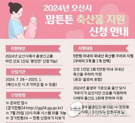 해당 사업은 올해 오산시에서 출생신고를 한 산모라면 신청가능하다.