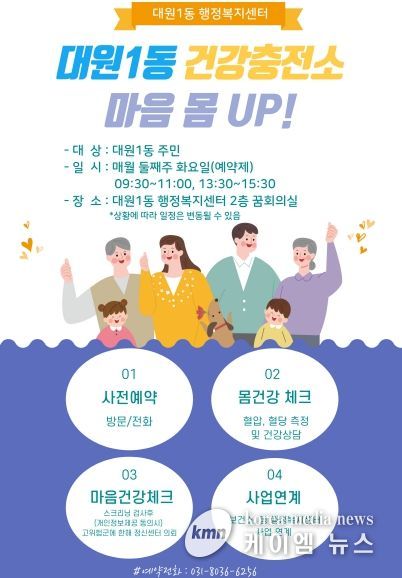 (케이엠뉴스) 오산시 대원1동은 주민 건강 프로그램인 ‘대원1동 건강충전소, 마음과 몸 UP!’ 프로그램을 8월부터 운영한다.