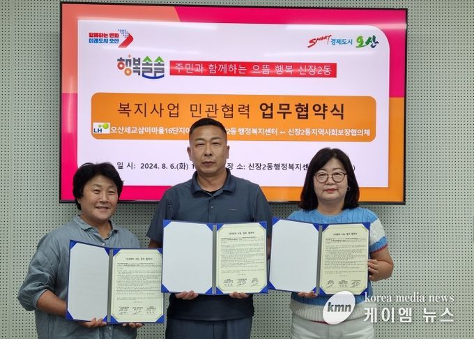 (케이엠뉴스) 오산시 신장2동과 신장2동 지역사회보장협의체는 지난 6일에 오산세교 삼미마을16단지 아파트와 신장2동 복지사각지대 해소와 지역복지 안전망 강화를 위한 업무협약을 체결했다.