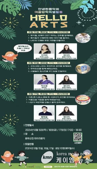 (케이엠뉴스) (재)화성시문화재단 '거점 예술활동 지원사업' '자유공간29'의 ‘안녕 컬처로드’가 여름방학을 맞아 특별활동 프로그램인 '안녕한 음악회'를 선보인다.