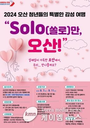 (케이엠뉴스) 오산시는 결혼에 대한 긍정적인 인식변화와 가족 친화적인 사회 분위기를 조성하기 위해 미혼남녀들의 특별한 만남 행사 “SOLO(쏠로)만 오산!”을 추진하고 있다.