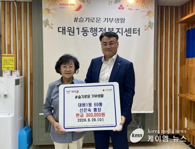 (케이엠뉴스) 오산시 대원1동은 8월 1일 자로 신규 위촉된 신은숙 69통장이 관내 어려운 이웃을 위해 대원1동 행정복지센터에 성금 30만 원을 28일 기탁했다고 전했다.