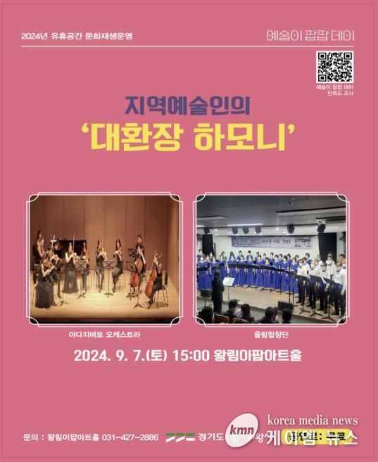 ‘예술이 팝팝 데이’ 시즌2 사업의 일환인 이번 공연은 의왕시 지역예술인으로 이루어진 아다지에토오케스트라와 울림합창단 단원들이 함께하는 기획 공연으로 진행된다.
