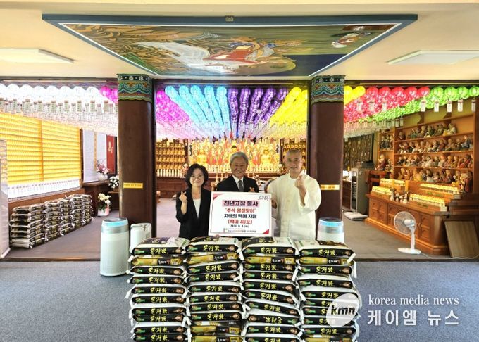 (케이엠뉴스) 하남시 춘궁동에 소재한 천년고찰 동사는 천일기도를 마치고 이에 감사하는 의미로 지역사회 내 취약계층에게 전달해 달라며 2024년 백미 총 1,080포(10,800kg)를 하남시미사강변종합사회복지관과 하남시장애인복지관 등 지역사회 내 복지시설에 전달했다.