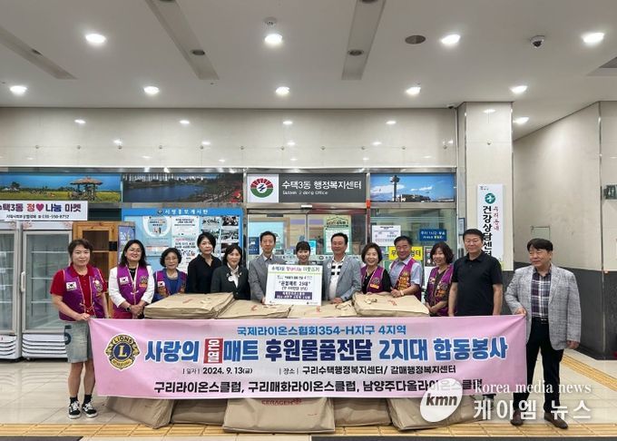 (케이엠뉴스) 구리시 수택3동행정복지센터에서는 지난 13일 국제라이온스협회 354-H지구 4지역 2지대와의 후원물품 전달식을 진행했다.
