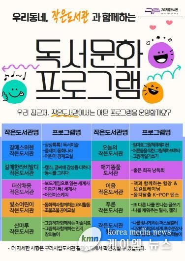 (케이엠뉴스) 구리시는 9월부터 지역 내 사립작은도서관과 연계 협력하여 다채로운 독서문화프로그램을 운영한다.