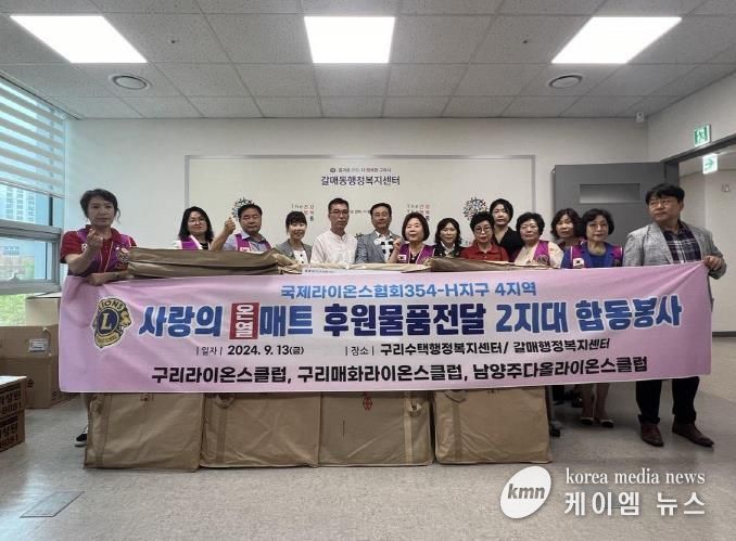 (케이엠뉴스) 구리시 갈매동행정복지센터는 지난 13일, 국제라이온스협회 354-H지구 4지역 2지대의 후원물품 전달식을 진행했다.