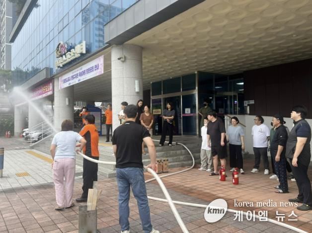 이날 부곡스포츠센터 직원들은 화재 재난 사고를 대비해 옥내소화전 및 소화기 종류와 사용 방법, 대피 훈련 등을 상세히 교육받고, 화재 진화 시연에 직접 참여해 실제 상황에서 신속히 대처할 수 있도록 훈련했다.