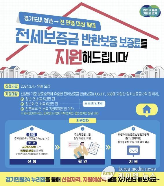 (케이엠뉴스) 부천시는 전세사기 피해를 예방하고 안정적 거주 환경을 지원하는 무주택 임차인 대상 ‘전세보증금 반환보증 보증료 지원사업’을 지속 추진하고 있다.