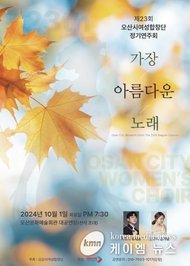 (케이엠뉴스) 오산시가 오는 10월 1일 오산문화예술회관 대공연장에서 '제23회 오산시여성합창단 정기연주회'를 개최한다.