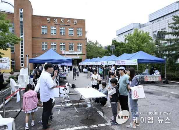 인창도서관에서는 도서관 앞마당에서 '북캠핑'을 주제로 독서 체험·러시아 문화 체험·메이커 체험·태양관측 체험 등 다채로운 체험 부스를 운영하는 행사를 개최했다.