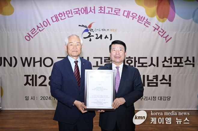 (케이엠뉴스) 구리시는 10월 4일 구리시청 대강당에서 고령친화도시 가입 인증 선포식과 함께 제28회 노인의 날 기념식을 개최하였다.