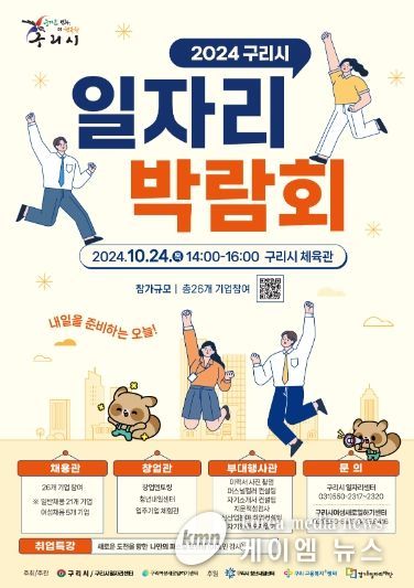 (케이엠뉴스) 구리시는 10월 24일 오후 2시 구리시 체육관(구리시 체육관로 131)에서 '2024년 구리시 일자리박람회'를 개최한다.