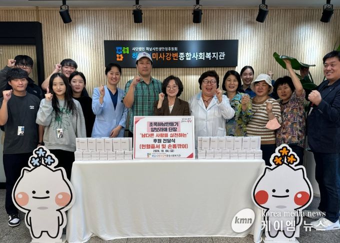 (케이엠뉴스) 지난 4일, '헌혈왕'으로 불리며 하남시 헌혈 홍보위원으로 활동하고 있는 초록하남만들기는 하남시미사강변종합사회복지관과 함께 헌혈 문화 확산을 위한 캠페인을 진행하며, 그 동안 헌혈을 통해 모은 헌혈증서 20매와 손톱깎이 100세트를 복지관에 전달했다.
