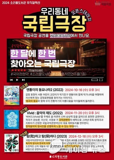 (케이엠뉴스) 오산시 소리울도서관은 국립극장이 주관하는 ‘2024 우리동네 국립극장’ 공모사업에 선정되어 오는 16일부터 ‘2024년 우리동네 국립극장’ 프로그램을 운영한다.